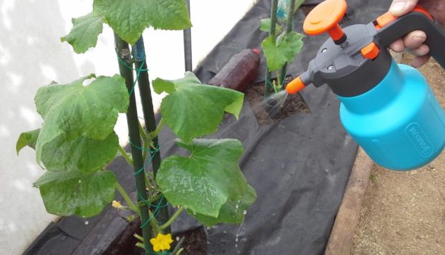 Los pepinos se tratan con productos biológicos mediante pulverización, así como cuando se utilizan productos químicos. Es muy importante adherirse a la dosis indicada al preparar la solución, de lo contrario otros insectos pueden sufrir por el uso de tales composiciones.