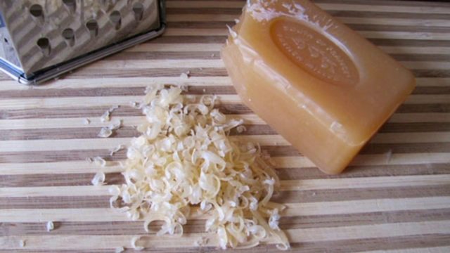 La solución de jabón es bastante eficaz, segura y fácil de preparar. Debe tomar 10 litros de agua limpia y agregarle 100 g de jabón para lavar, previamente rallado. Con una solución de este tipo, no solo puede procesar pepinos, sino que también se usa para limpiar las hojas en las que se encuentra la colonia de pulgones. La solución jabonosa no solo elimina los insectos, sino que también elimina los desechos.