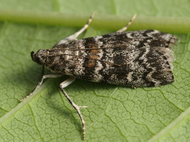 Las orugas de la polilla tienen la cabeza negra y el cuerpo verde. Chupan el jugo de las bayas, destruyéndolas y enredando los racimos con telarañas.