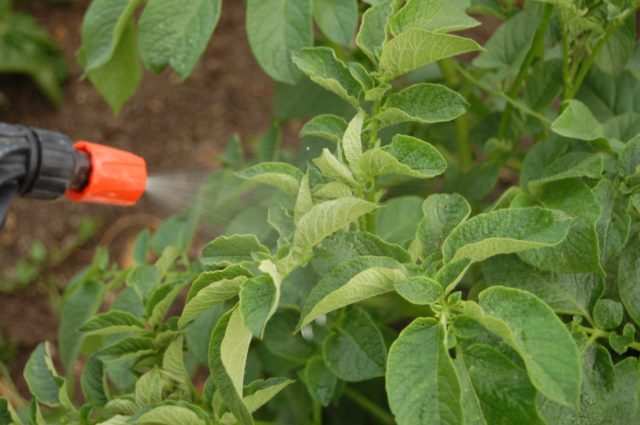 Antes de comenzar a rociar, debe cuidar la protección de la piel y las membranas mucosas. Intentan rociar rápidamente la solución recién preparada, distribuyéndola uniformemente en todas las partes de la planta. La demora en el trabajo puede resultar en daños tanto para el cultivo como para el manipulador. Es inaceptable almacenar la solución terminada durante más de varias horas.