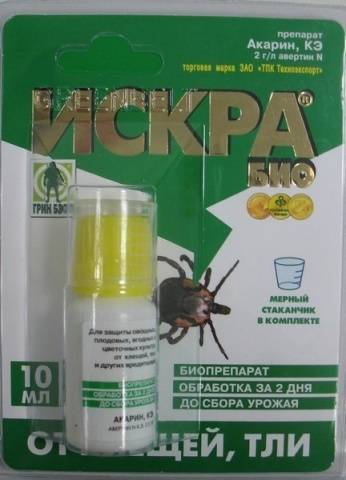 Iskra Bio está destinado a combatir las orugas, las larvas del escarabajo de la patata de Colorado, los ácaros y otras plagas. Según la descripción, se observa un efecto parcial de la droga en los escarabajos adultos.