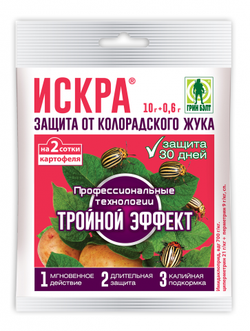 El escarabajo de la patata de Colorado es un insecto redondeado con características rayas negras y amarillas. La actividad de la plaga dura de mayo a otoño. Existen varios métodos para controlar la plaga. Los más efectivos son los preparados químicos, cuya acción le permite neutralizar el escarabajo de la patata de Colorado. Tal remedio es el "efecto triple de chispa" del escarabajo de la patata de Colorado y otras variedades de esta droga.