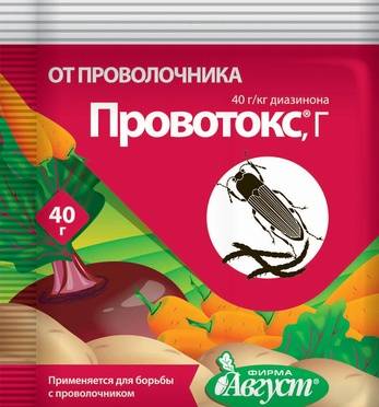 Pero hay ocasiones en las que todas estas medidas no son suficientes. Entonces tienes que recurrir a productos químicos. No hay tantos insecticidas del gusano de alambre. La mayoría de ellos están hechos a base de diazinón, que pertenece a la clase de insecticidas organofosforados. El diazinón fue desarrollado hace más de medio siglo por la empresa suiza Ciba Geigi. Durante mucho tiempo, este insecticida se ha utilizado para combatir insectos domésticos. Una de las sustancias a base de diazinón es Provotox de gusano de alambre.