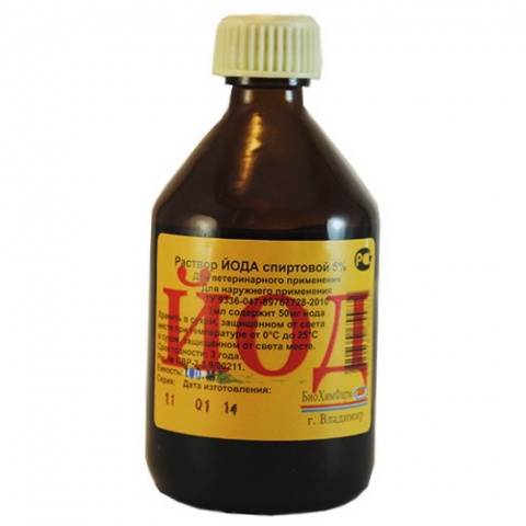 Aderezo con yodo realiza a principios de primavera. Este procedimiento es especialmente útil para plantas jóvenes. La solución requiere 10 litros de agua y 3 gotas de yodo. En otoño, la plantación se riega con una solución obtenida de 10 litros de agua y 15 gotas de yodo.