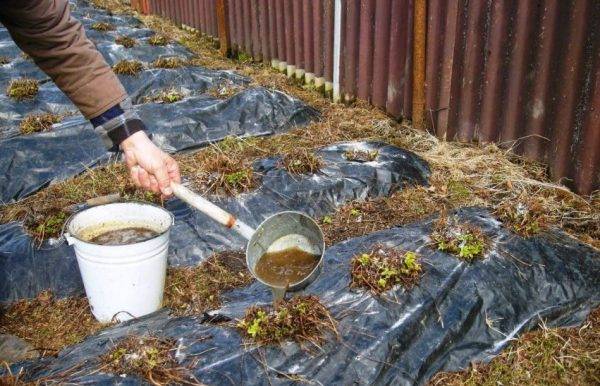 La foto de abajo muestra cómo llevar a cabo la alimentación primaveral de las plantas invernadas.