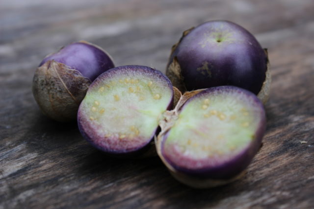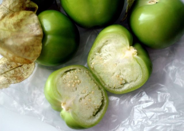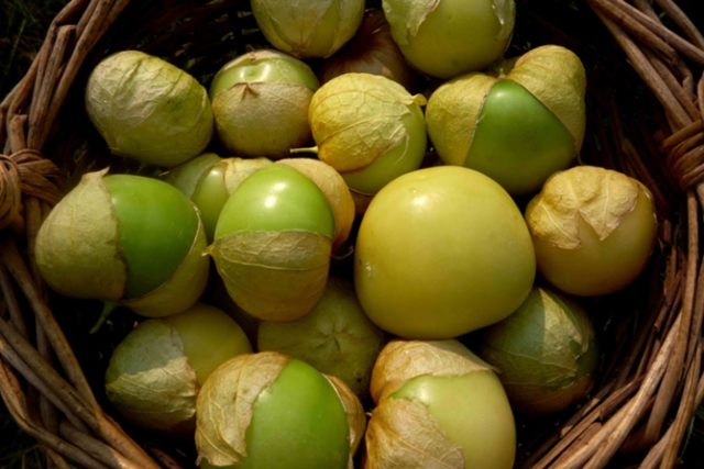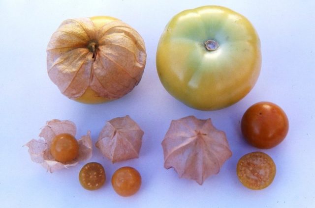 Un rasgo característico de physalis es una fruta en forma de baya, similar a un tomate verde de tamaño mediano, que está en una cáscara, una vaina seca formada por sépalos intercrecidos. En una especie decorativa, la baya de color rojo anaranjado es pequeña, en árboles frutales, pesa 30-90 g, de color verde, amarillo verdoso o púrpura.