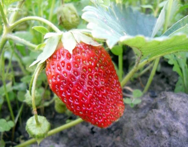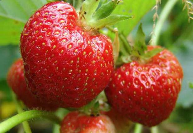 Entre las fresas remontantes, la “Reina Isabel II” es perfecta para las condiciones de Siberia. Esta variedad remontante se puede llamar con seguridad una de las mejores. Se caracteriza por un alto rendimiento, hasta 1,5 kg por arbusto. Las bayas de esta fresa son especialmente grandes, con un peso de 40 a 80 g. Algunas frutas alcanzan un peso récord de 100 g. El sabor de la fruta es excelente: cada baya combina la cantidad óptima de ácido y azúcar. Puedes ver las bayas "Queen Elizabeth II" en la foto de abajo.