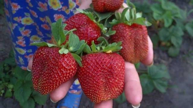 - El tamaño de las bayas: para muchos amantes de las fresas, este indicador es importante, ya que no solo facilita la recolección de fresas, sino que también les da una razón para presumir de sus éxitos en la jardinería ante vecinos y seres queridos. Las frutas que pesan más de 50-60 gramos se consideran grandes y el tamaño de las bayas de algunas variedades puede alcanzar hasta 120 gramos.