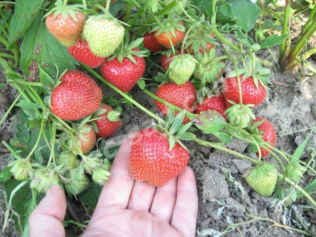 Esta variedad de fresas de jardín de selección rusa es verdaderamente una de las mejores variedades remontantes que se pueden cultivar prácticamente en toda Rusia. Las bayas son de buena densidad, jugosas y dulces, su peso promedio es de 40-50 gramos, pero hay ejemplares que pesan hasta 120 gramos. Conservan su forma cuando se cocinan y son excelentes para congelar. Las fresas pasan bien el invierno, pero no son lo suficientemente resistentes a la sequía. El momento óptimo para plantar plántulas de esta fresa es a fines del verano y principios del otoño. Los tallos de flores invernales le permiten obtener una cosecha muy temprana de bayas. La fructificación dura hasta las heladas. Pero los arbustos gastan tanta energía en la formación de frutos que se recomienda renovarlos anualmente con nuevos bigotes para que las bayas no pierdan tamaño.