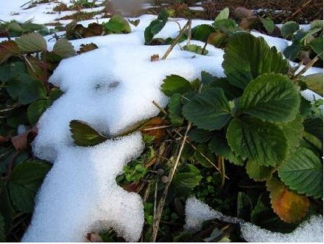 Si los arbustos de fresa tienen tiempo para acumular una masa de hojas antes del inicio del clima frío, entonces no le temen al invierno. Para mayor confiabilidad, cubra las crestas con ramas de abeto, spunbond u otro material de cobertura.