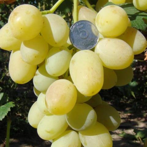 Así, al cruzar "Talisman" y "Kish-Mish radiant", fue posible obtener una nueva variedad con cualidades únicas. Sus características realmente asombran incluso a los viticultores más experimentados. Los conocedores del gusto dicen que habiendo probado la baya de esta variedad, es imposible olvidar el sabor a nuez moscada con aroma a lirio de los valles y acacia blanca.