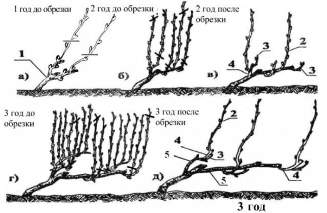 La variedad "Lirio de los valles" tiene arbustos vigorosos, de hasta 4 m de altura, que deben formarse adecuadamente. Es necesario podar la vid durante los primeros años de cultivo. En la siguiente imagen se propone una posible variante de la formación de una vid de esta variedad: