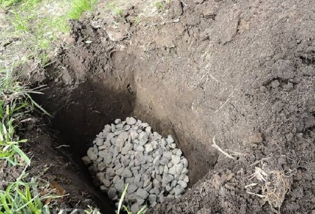 Se coloca una capa de piedra triturada o grava en el fondo del pozo.