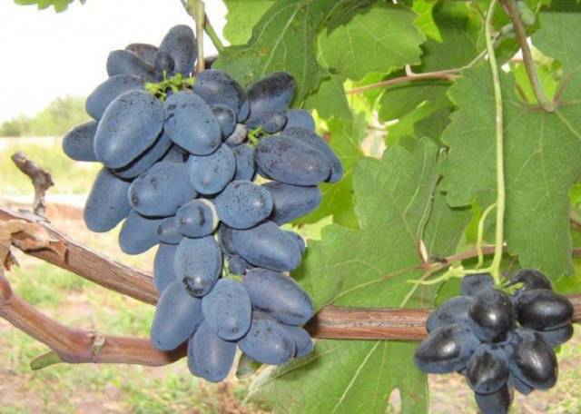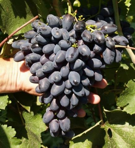 Los racimos son densos, cónicos, no hay guisantes. El peso de uno puede alcanzar un kilo y medio.