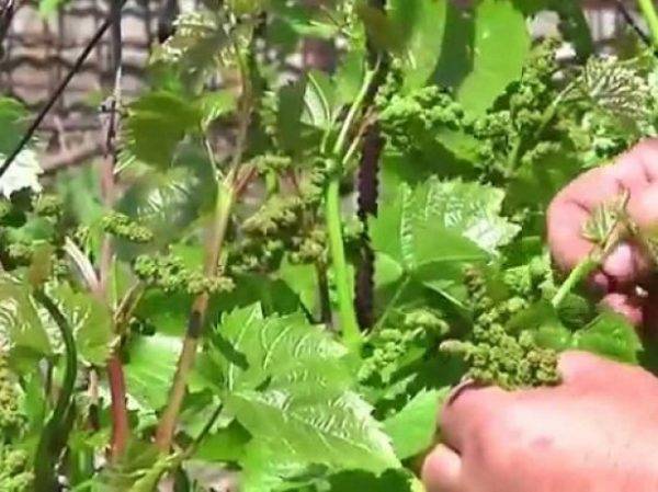 La variedad Zolotinka incluso requiere poda en verano. Consiste en eliminar el exceso de inflorescencias. Sin embargo, la carga insuficiente o sobrecarga de un arbusto de uva solo deberá determinarse empíricamente. Si deja muchas inflorescencias, las bayas serán pequeñas. La vid se adelgazará con el otoño y no tendrá tiempo de madurar. La pequeña cantidad de inflorescencias tampoco favorece a las uvas Zolotinka. Los racimos de bayas crecerán, pero la vid engordará. Para el otoño, aparecerán pestañas gruesas y demasiado largas.La cantidad de inflorescencias que quedan depende del tamaño y la edad del arbusto y es seleccionada por el jardinero individualmente.