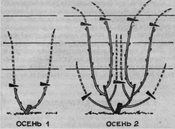 La poda indolora de las vides se realiza en otoño. Un arbusto adulto de la variedad Zolotinka debe tener un máximo de 45 ojos. Después de la suspensión del flujo de savia, los pagones se cortan, dejando 4-8 yemas. La vid se ata con una cuerda y se prepara para la invernada. Se coloca un escudo en el suelo hecho de tablas, paja o cartón grueso. Se coloca una vid encima, se cubre con un material denso y se cubre con tierra. En la primavera, se lleva a cabo una inspección del arbusto hibernado. Se cortan los brotes rotos y congelados.