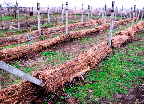 En las regiones frías, los arbustos de uva de Maradona se cubren después de la poda. Un escudo de paja está organizado en el suelo. La vid se ata con cuerdas y se coloca sobre una estera. Las uvas de chocolate superior se cubren con un material denso o esteras de caña tejida.