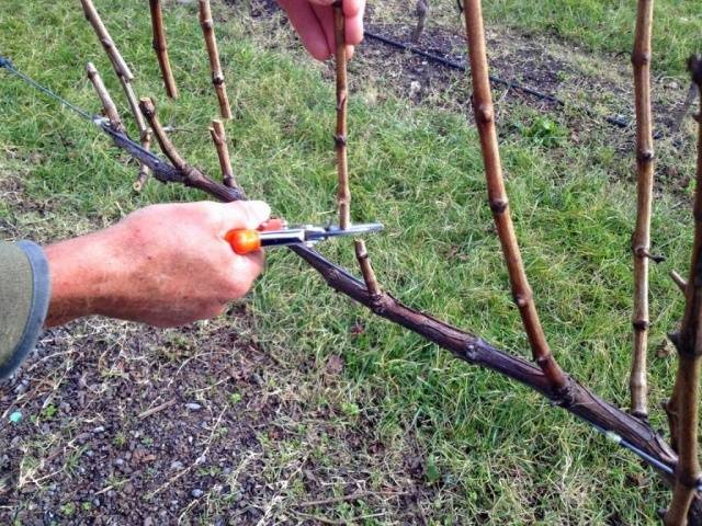 Cortar la vid en Rusbola Muscat para 6-8 ojos. También es posible una poda corta, solo 3-4 ojos.