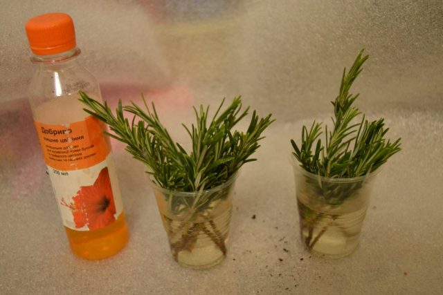 Un gran arbusto de romero se puede cultivar con éxito a partir de una ramita. Lo mejor es elegir brotes jóvenes de 5 cm de largo, cortados de un arbusto adulto. Utilizo este método de cría en cualquier época del año. La ramita tiene sus raíces en casa.