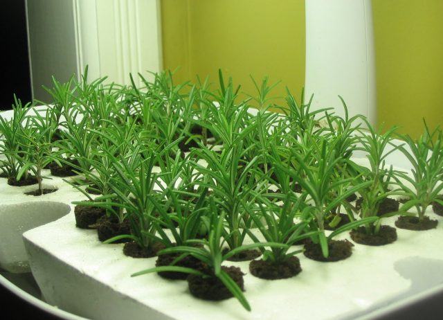 No basta con plantar semillas de romero, es importante cuidar bien las plántulas. Los contenedores se reorganizan en el alféizar de la ventana. La temperatura ambiente se mantiene desde +18 oC.
