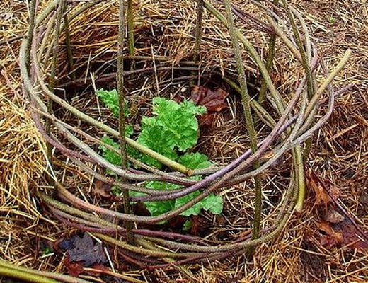 Todos los tipos de menta, incluida la piña, crecen muy rápido y pueden deprimirse entre sí. Por lo tanto, al plantar, se cavan hoyos en incrementos de 20-30 cm. Las plántulas se plantan a una profundidad de 5 cm. Se propagan por brotes o arbustos pequeños después de dividirse. Para que pueda, si es necesario, protegerlos de las heladas, debe envolverlos con ramas de sauce como se muestra en la foto de abajo.