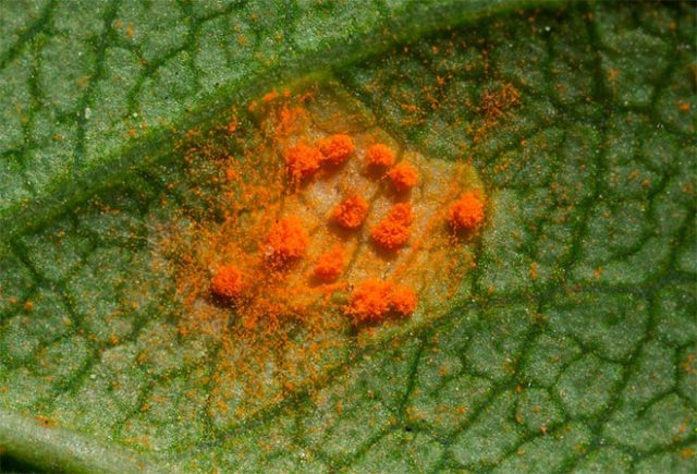 - Oxido. La enfermedad puede reconocerse por las características almohadillas de esporas de color marrón rojizo del hongo. Poco a poco, aparecen focos de podredumbre en su lugar y la planta muere.