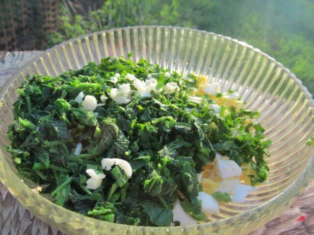 Esta ensalada es solo una "bomba de vitaminas", y los elementos útiles para la lactancia son vitales para la madre. Desafortunadamente, solo se puede cocinar en primavera y principios de verano.
