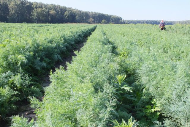 Las hojas de la planta son grandes, de color verde oscuro, jugosas, con un alto contenido en aceites esenciales. El primer corte se realiza a principios de junio a partir de las hojas inferiores, el último a mediados de septiembre. En las regiones del noroeste, la cultura no tiene tiempo para formar inflorescencias.