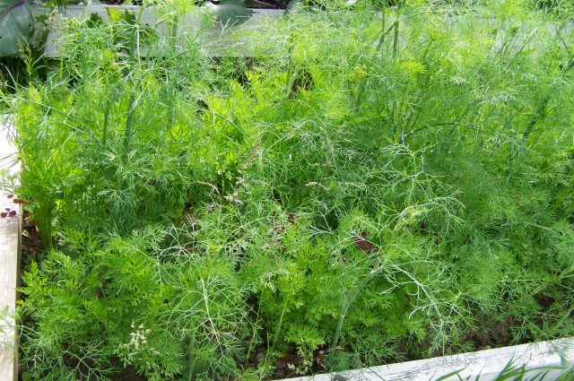 El eneldo ordinario plantado en verduras se cosecha de la raíz y el siguiente lote se siembra en el espacio vacío. El proceso es laborioso, el consumo de material de siembra es elevado. El eneldo de Bush ahorra semillas y no da menos rendimiento.