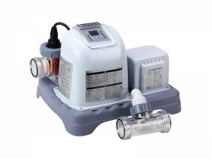 Por separado, vale la pena considerar el sistema de purificación de agua, sin el cual ni una sola piscina puede funcionar normalmente. La unidad consta de una bomba y un filtro. La calidad de la purificación del agua depende del relleno.