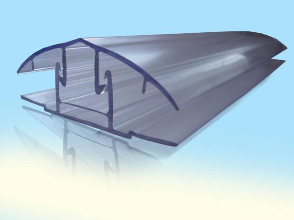 Si hay juntas de dos láminas de policarbonato, se utiliza un perfil para la conexión. La estanqueidad de la junta dentro del perfil está asegurada por la silicona incrustada.