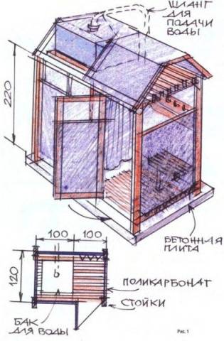 Si los argumentos de las ventajas del policarbonato lo han convencido, continúe con la siguiente etapa de construcción de una ducha para una residencia de verano.