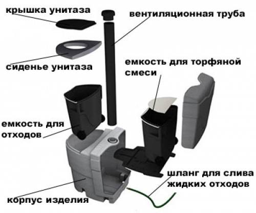 Todos los inodoros de turba están dispuestos casi de la misma manera, como se puede ver en el diagrama de la foto: