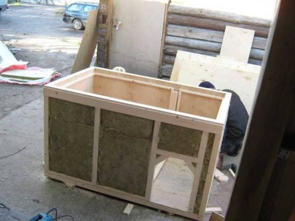 - Después de unir el revestimiento interior al exterior de la caja, se obtuvieron las celdas. Ponemos espuma de plástico con un grosor de 20 mm aquí.