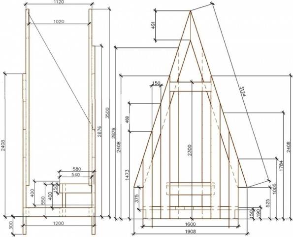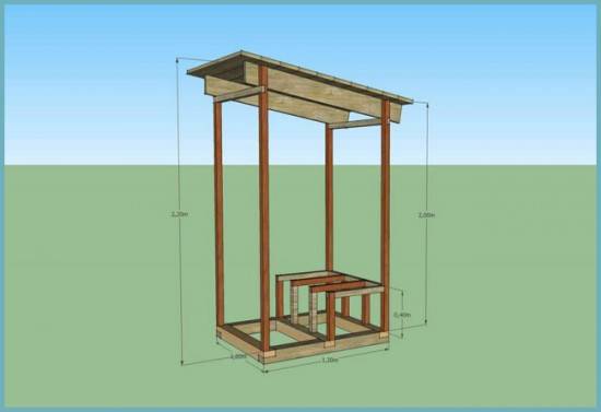 La versión más simple y común de un retrete en la calle es una casita para pájaros. La foto muestra la estructura terminada, una tabla de consumibles, así como la estructura en sí.