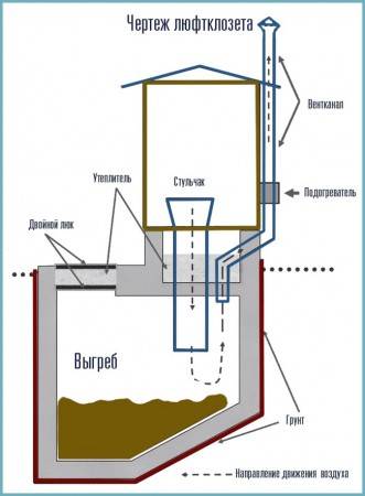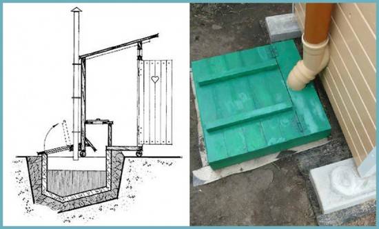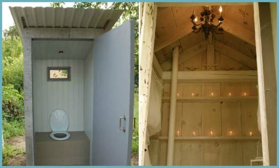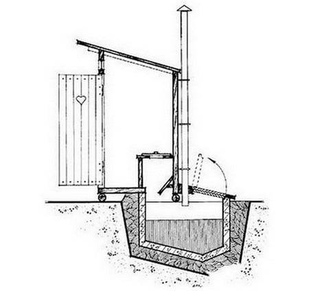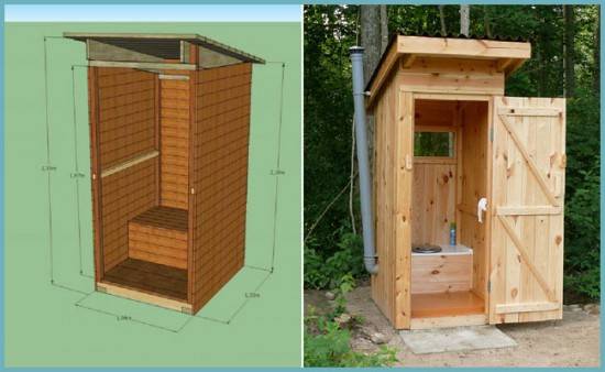 Si le da el diseño a una vista general, entonces un inodoro al aire libre puede ser con un pozo negro para la acumulación de desechos o sin él. Puede construir de forma independiente un inodoro del siguiente diseño en una cabaña de verano: