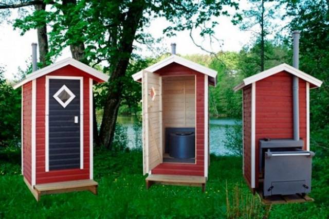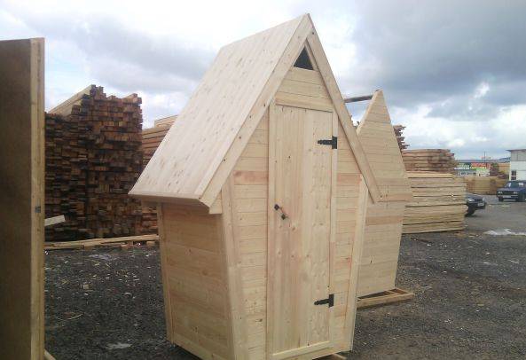 La siguiente foto muestra un modelo de una casa de baño al aire libre en forma de cabaña, no menos popular para regalar.