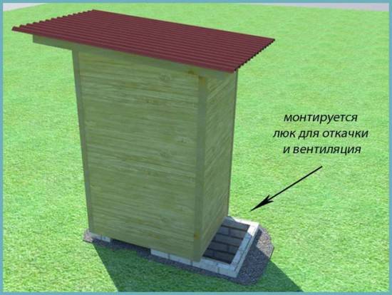 El diseño del inodoro más simple consiste en un cubículo, debajo del cual hay un acumulador de desechos.... Si el pozo negro está diseñado para una gran cantidad de usuarios, sus paredes están construidas con capital, por ejemplo, de ladrillo u hormigón. A medida que las aguas residuales se llenan de aguas residuales, el accionamiento del baño del campo se bombea con una máquina de aguas residuales. Cuando el inodoro rara vez se usa, el tanque de almacenamiento se hace poco profundo. Después de llenarlo, la casa del baño se traslada a otro lugar y se conserva el antiguo pozo. La foto muestra un ejemplo de un baño de campo con un pozo negro.