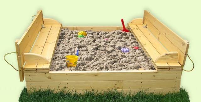 No es tan difícil construir cajas de arena para niños con una tapa con sus propias manos. En casos extremos, puede dar preferencia al modelo de tienda. Cuando se hace a sí mismo, el más popular es la estructura de madera. El material natural se presta bien para el procesamiento. Por lo general, una caja de arena está hecha de forma rectangular y se derriba un escudo de las tablas como cubierta. Los padres, a quienes no les gusta detenerse en soluciones estándar, construyen una estructura en forma de automóvil, bote o un personaje de cuento de hadas. Incluso la tapa del arenero no es fácil. El escudo se ensambla a partir de segmentos individuales unidos por bucles. Cuando abres una tapa de este tipo, obtienes dos cómodos bancos con respaldo.