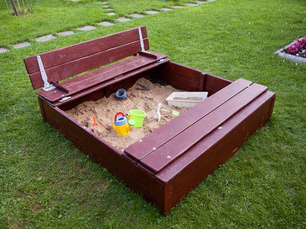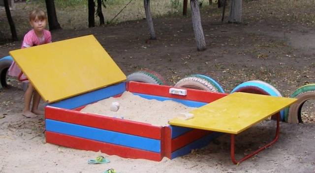 Para darle un aspecto estético a una caja de arena para niños con tapa y proteger la madera de la humedad, la estructura está pintada con pintura al óleo o acrílica. Es aconsejable dar preferencia a los colores brillantes para atraer la atención del niño.