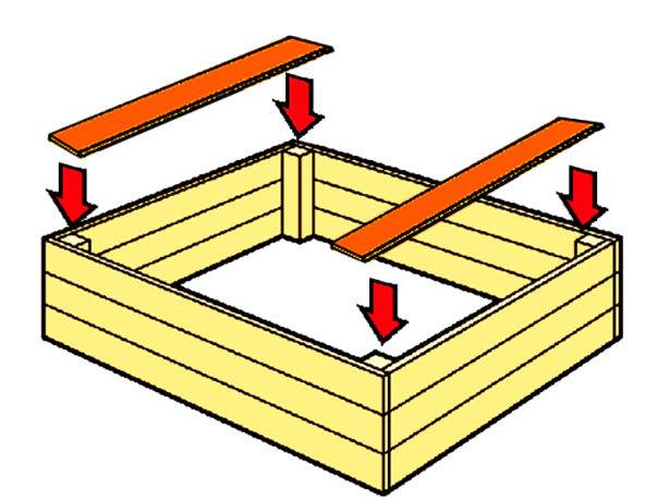 - 4 Elaboramos un diagrama detallado de una caja de arena para niños con tapa.