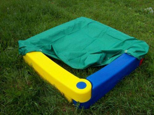 - Al comprar una caja de arena de plástico, será útil prestar atención a las opciones equipadas con una tapa y un dosel. La tapa mantendrá limpio el relleno y el dosel creará una sombra para el juego cómodo de los niños, evitando que la luz solar directa llegue a su piel.
