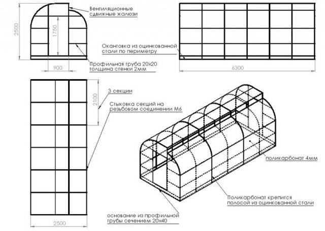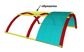 Una gran ventaja de los tubos de plástico es su larga vida útil. Esto significa que la cubierta del invernadero también debe cumplir con los mismos estándares. Cualquier película de la temporada o incluso todos los años tendrá que cambiarse. El policarbonato es un material de revestimiento de invernadero ideal. La estructura resultará duradera, cálida y durará muchos años. La foto de abajo muestra un dibujo de un invernadero arqueado típico cubierto con policarbonato.