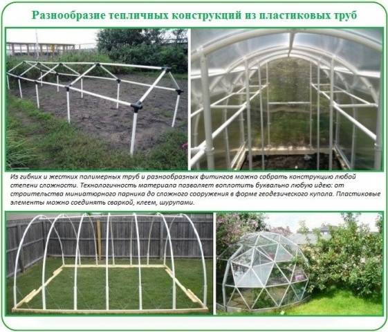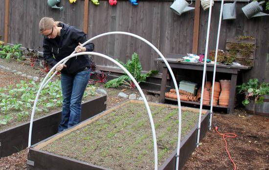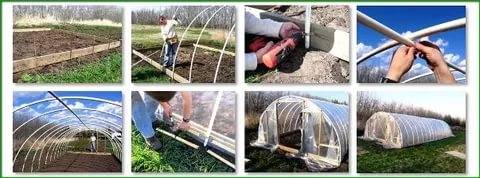 El jardinero puede construir independientemente cada uno de los invernaderos considerados en su sitio. Los tubos de plástico son livianos, se doblan bien, lo que le permite hacer un marco sin ayuda.