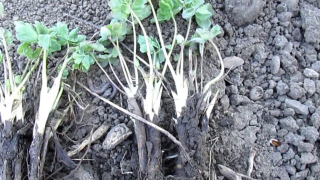 Aquilegia es un cultivo ornamental resistente a las heladas y al frío. Los arbustos jóvenes (hasta 1 año) para el período invernal están cubiertos con material no tejido o ramas de abeto. Las plantas maduras no necesitan refugio. Durante la preparación para la invernada, las bases de las hojas de aquilegia mueren y se transforman en parte del sistema radicular. Por esta razón, en las águilas adultas, las raíces sobresalen del suelo.