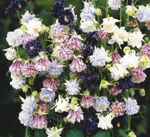 Los delicados tonos de los pétalos de aquilegia del Sr.Scott Elliot sorprenden con mágicas combinaciones de tonos pastel.