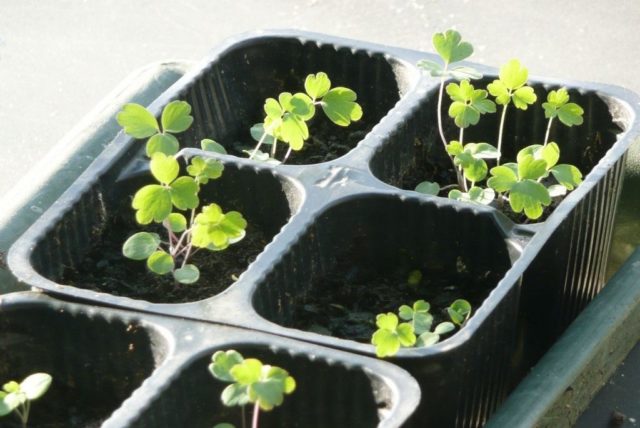 Para las plántulas, las semillas de aquilegia estratificadas se siembran en una mezcla de suelo especialmente preparada y bien humedecida.El sustrato de la cuenca de captación consiste en partes iguales de tierra de césped, arena gruesa de río y humus. Las semillas no se esparcen densamente, no se presionan ligeramente ni se rocían con una capa delgada de tierra. Para crear un efecto invernadero, el recipiente se cubre con una envoltura de plástico. A temperaturas de hasta 18 ° C y un nivel de humedad suficiente, las primeras entradas aparecen después de 2 semanas.