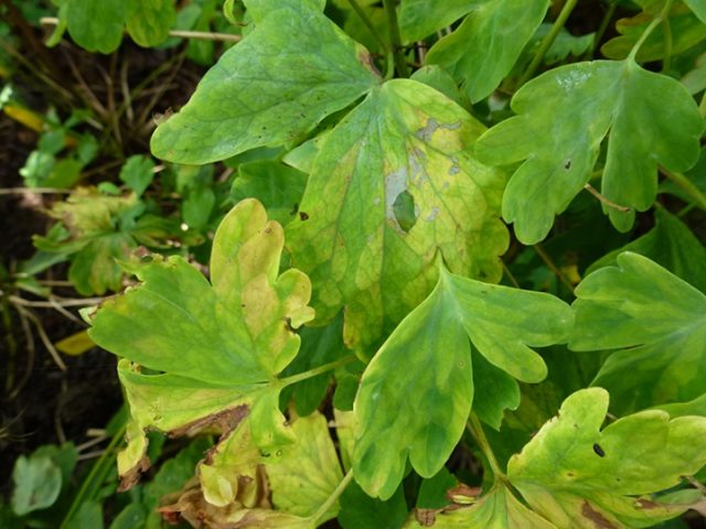 El mildiú polvoroso afecta la aquilegia durante las lluvias persistentes