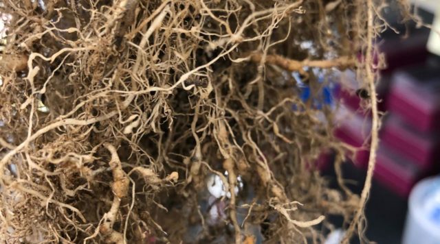 Los nematodos infectan el sistema de raíces de la cuenca.