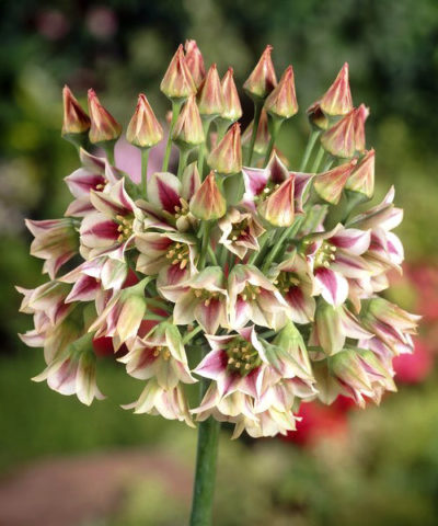 La cebolla decorativa búlgara es una planta perenne con elegantes flores de color rosa oscuro con un borde blanco. Se diferencia en el cuidado sin pretensiones y la resistencia al invierno bastante buena. Se utiliza para decorar el jardín en plantas individuales y arreglos florales.